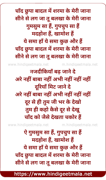 Lyrics of Chand Chhupa - चाँद छुपा बादल में शरमा के मेरी जाना
