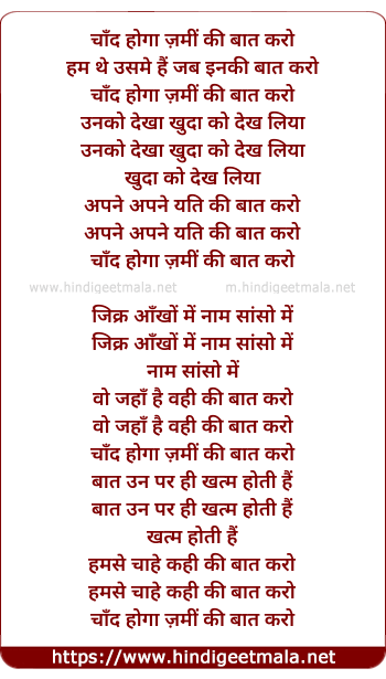 Lyrics of Chand Hoga Zamin Ki Baat Karo - चाँद होगा ज़मीं की बात करो