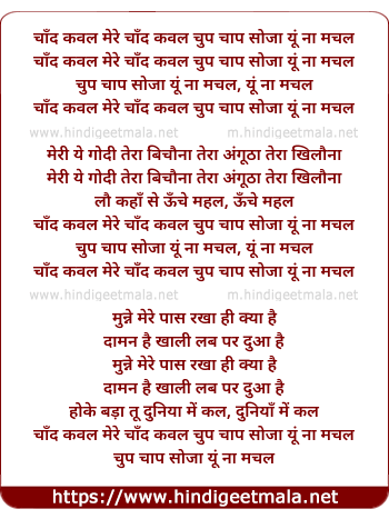Lyrics of Chand Kanwal Mere Chand Kanwal Chupchap So Ja Yu Na Machal - चाँद कवल मेरे चाँद कवल चुपचाप सोजा यूँ ना मचल