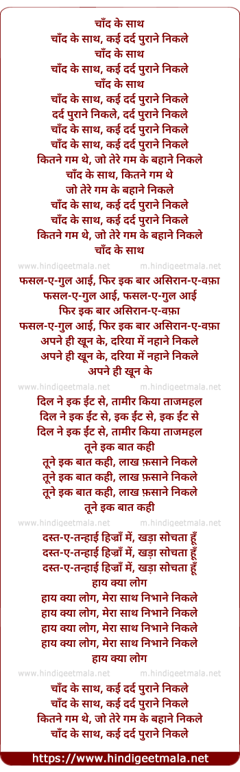 Lyrics of Chand Ke Sath Kayee Dard Purane Nikale - चाँद के साथ