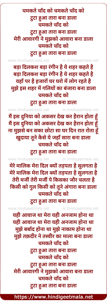 Lyrics of Chmakte Chand Ko Chmakte Chand Ko - चमकते चाँद को चमकते चाँद को