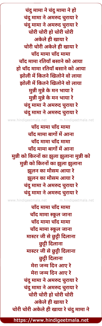 Poetic Translation - Lyrics of Chand Mama Ne Amrud Churaya Re - चंदु मामा ने चंदु मामा ने हो
