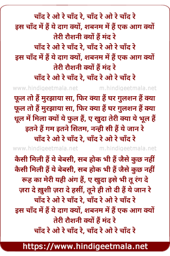 Lyrics of Chand Re O Re Chand Re Is Chand Me Hai Yeh Dag Kyu - चाँद रे ओ रे चाँद रे इस चाँद में हैं ये दाग क्यों