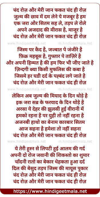 Poetic Translation - Lyrics of Chand Roj - चंद रोज़