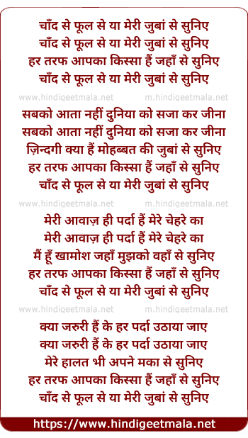 Lyrics of Chand Se Phul Se Ya Meri Zuban Se Suniye - चाँद से फूल से या मेरी जुबां से सुनिए