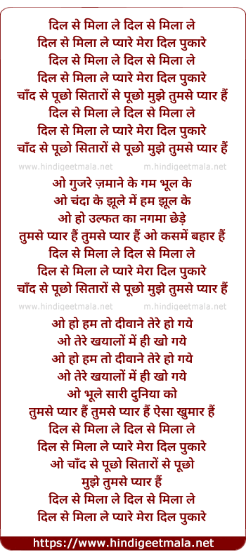 Lyrics of Chand Se Puchho Sitaro - दिल से मिला ले दिल से मिला ले