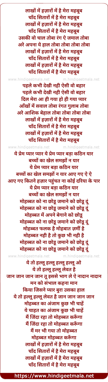 Lyrics of Chand Sitaro Me Mera Mehboob - चाँद सितारों में है मेरा महबूब