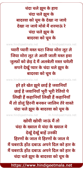 Lyrics of Chanda Chale Jhoom Ke - चंदा चले झूम के
