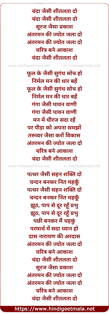 Lyrics of Chanda Jaisi Shitalta Do - चंदा जैसी शीतलता दो