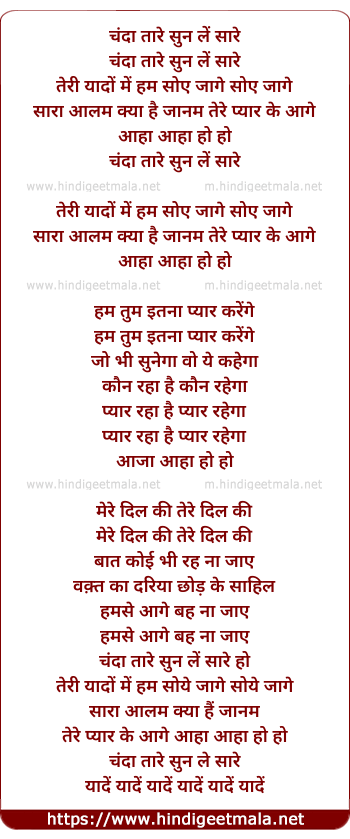 Lyrics of Chanda Taare Sun Le Saare - चंदा तारे सुन लें सारे