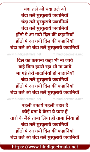 Lyrics of Chanda Tale Muskuraye - चंदा तले ओ चंदा तले ओ