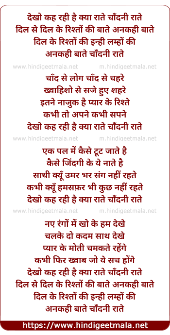 Lyrics of Chandani Rate - देखो कह रही है क्या राते चाँदनी राते