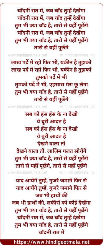 Lyrics of Chandni Raat Me Jab - चाँदनी रात में, जब चाँद तुम्हें देखेंगा