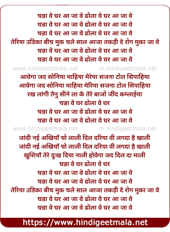 Lyrics of Channa Ve Ghar Aa Jaa Ve - चन्ना वे घर आ जा वे