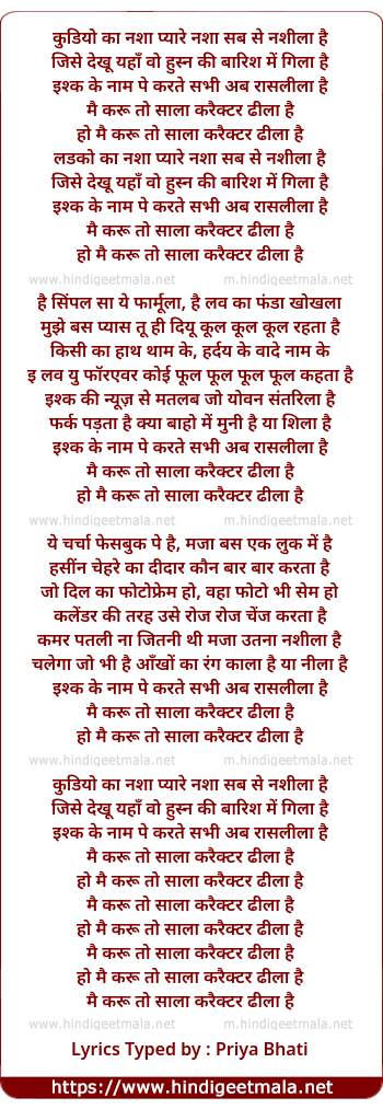 Lyrics of Mai Karu To Sala Character Dhila Hai - मैं करूँ तो साला करैक्टर ढीला है