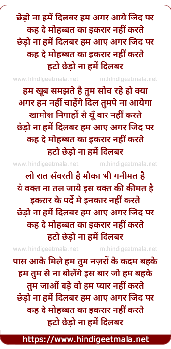 Lyrics of Chedo Na Hame Dilbar - छेड़ो ना हमें दिलबर