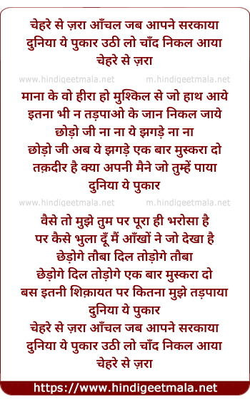 Lyrics of Chehare Se Zaraa Aanchal Jab Aapane Sarakaayaa - चेहरे से ज़रा आँचल जब आपने सरकाया