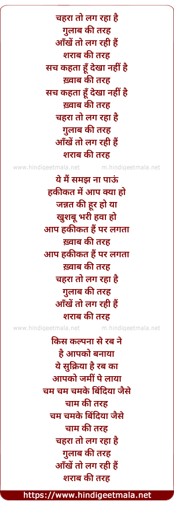 Poetic Translation - Lyrics of Chehra Toh Lag Raha Hai - चहरा तो लग रहा है