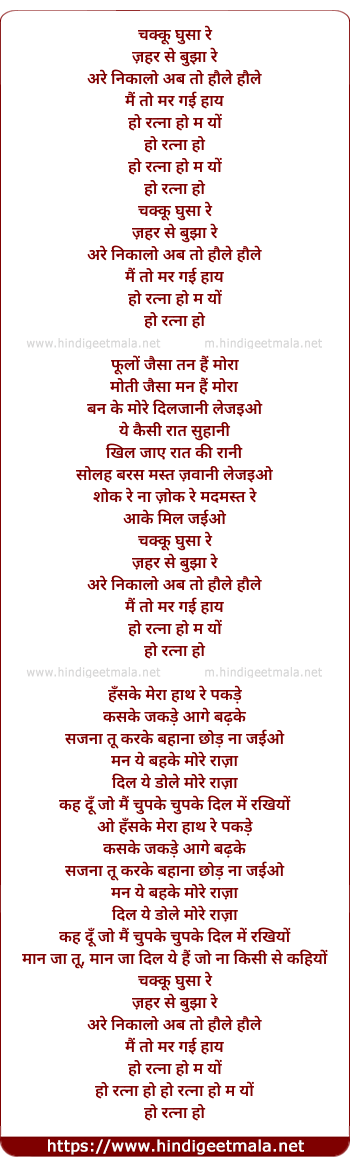 Lyrics of Chhaku Ghusa Re - चक्कू घुसा रे