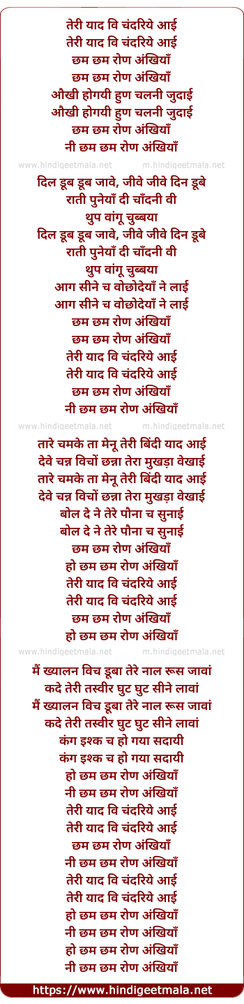 Lyrics of Chham Chham Ron Ankhiyan - तेरी याद वि चंदरिये आई