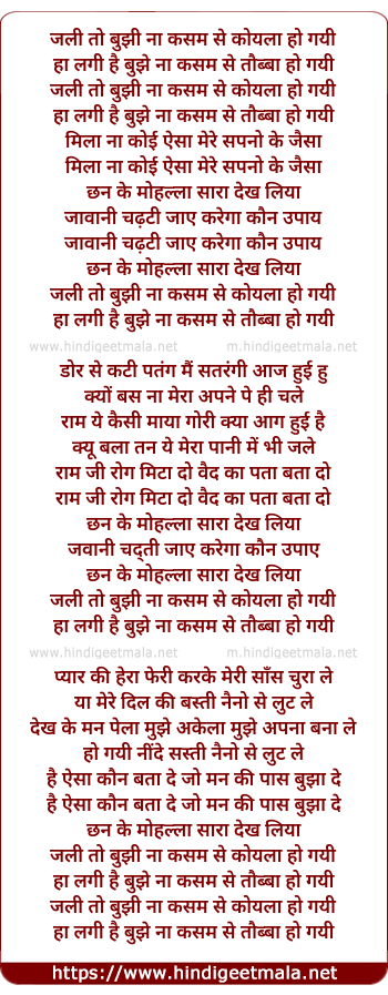 Lyrics of Chhan Ke Mohalla (Remix) - जली तो बुझी ना कसम से कोयला हो गयी