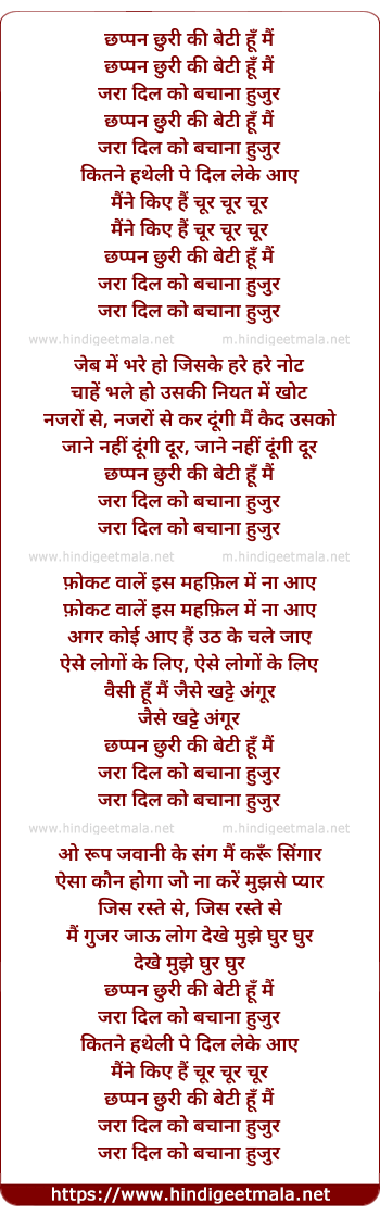 Lyrics of Chhapan Churi Ki Beti Hu Mai - छप्पन छुरी की बेटी हूँ मैं