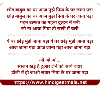 Lyrics of Chhod Babul Ka Ghar