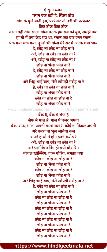 Lyrics of Chhod Na Re (Remix) - ऐ सुनो प्लान