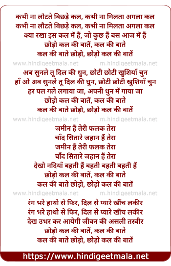 Lyrics of Chhodo Kal Ki Batein - छोड़ो कल कि बातें