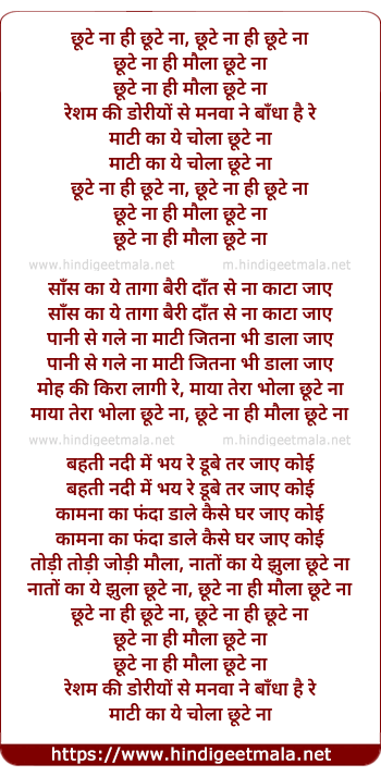 Lyrics of Chhoote Na Chhoote Na - छूटे ना छूटे ना