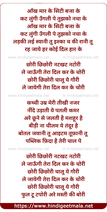 Lyrics of Chhori Chhichhori - छोरी छिछोरी