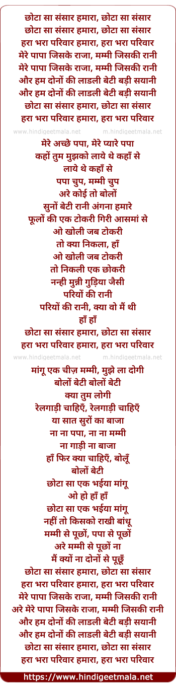 Lyrics of Chhota Sa Sansar - छोटा सा संसार