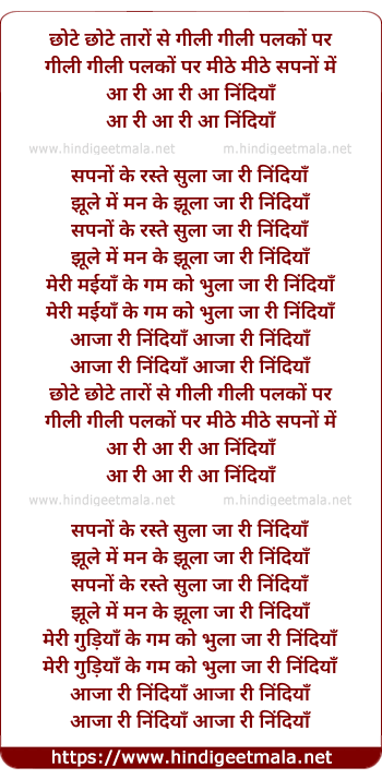 meri maiya ke gam ko bhula ja ri nindiya