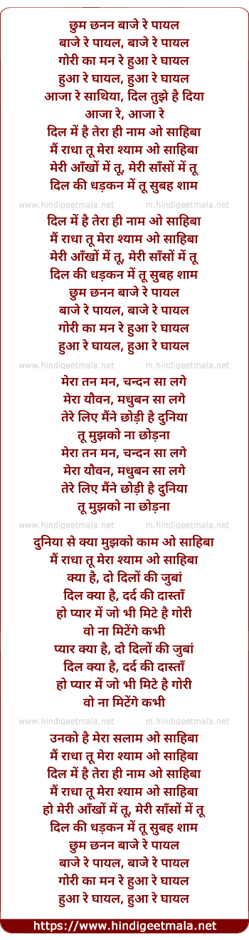 Lyrics of Chhum Chhum Baje Paayal - छुम छुम बाजे पायल