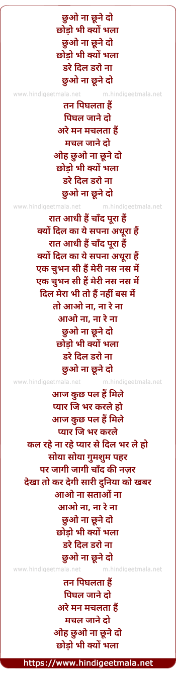 Lyrics of Chhuo Na Chhune Do - छुओ ना छूने दो