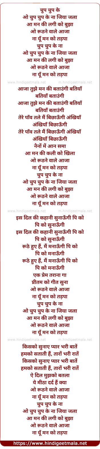 Lyrics of Chhup Chhup Ke Na Jiya Jala - चुप चुप के