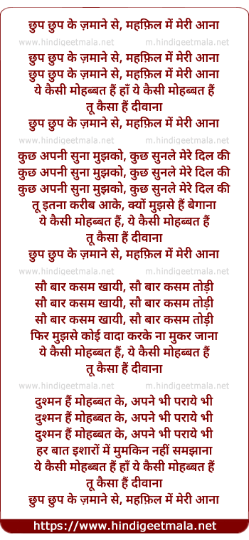 Lyrics of Chhup Chhup Ke Zamaane - छुप छुप के ज़माने