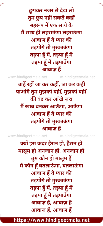 Lyrics of Chhupkar Nazar Se Dekh Lo - छुपकर नजर से देख लो