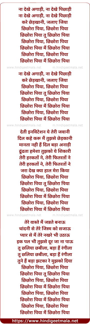 Lyrics of Chhichora Piya Tu Chhichora Piya - छिछोरा पिया तू छिछोरा पिया