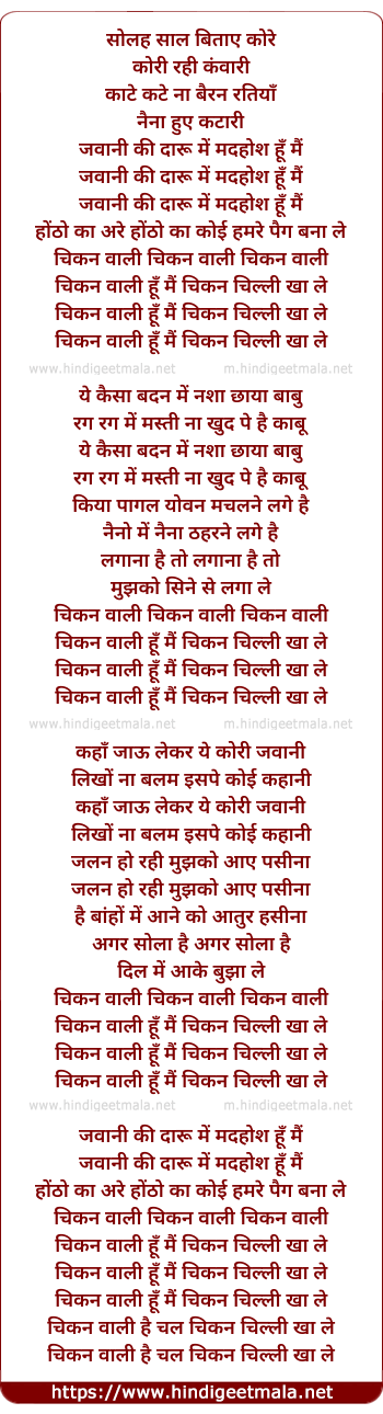 Lyrics of Chicken Wali Hu Main - चिकन वाली हूँ मैं