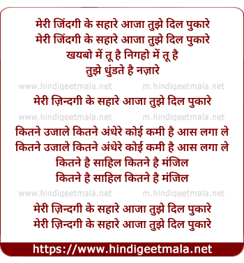 meri zindgi ke sahare aaja tujhe dil pukaru