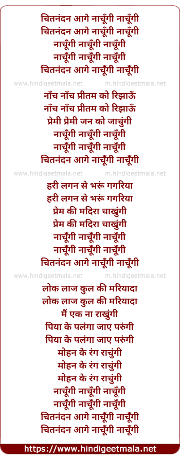 Lyrics of Chitnandan Aage Naachungi - चितनंदन आगे नाचूँगी नाचूँगी