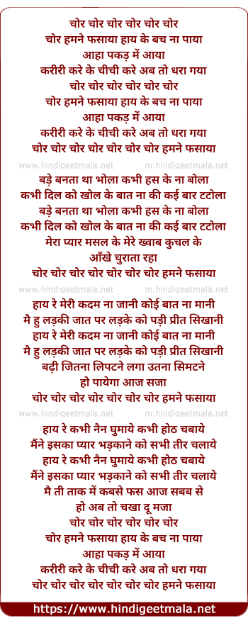 Lyrics of Chor Humne Phasaya Ke Bach Na Paaya - चोर हमने फसाया के बच ना पाया