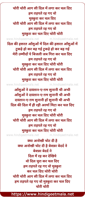 chori chori aag si dil me laga kar chal diye