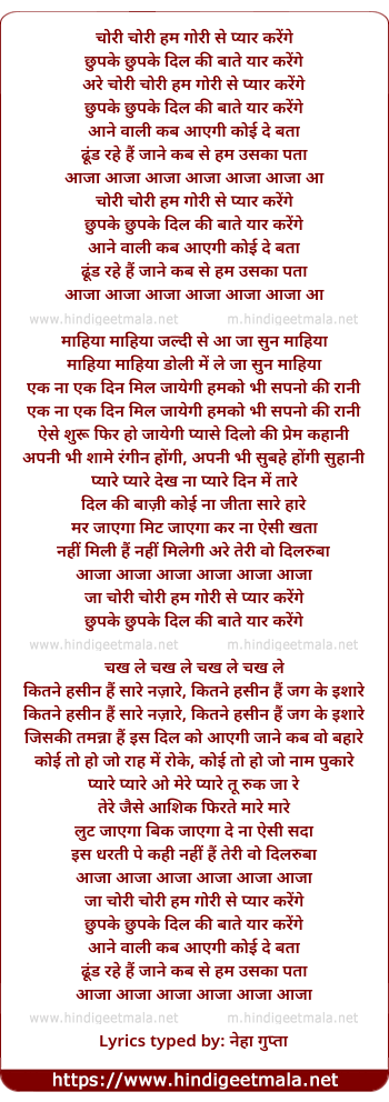 Lyrics of Chori Chori Hum Gori Se - चोरी चोरी हम गोरी से