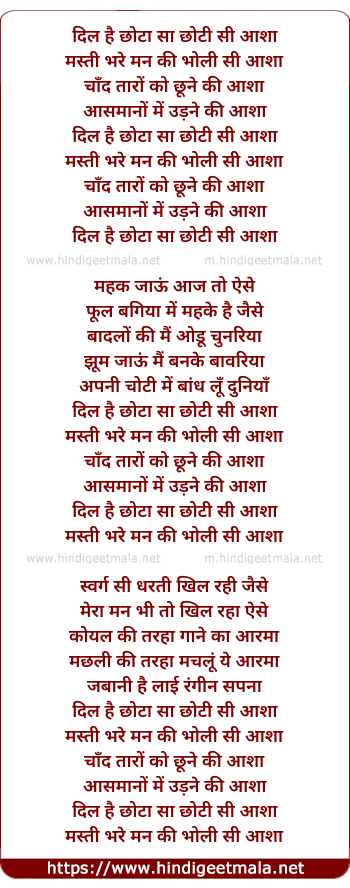 dil hai chhota sa chhoti si aasha