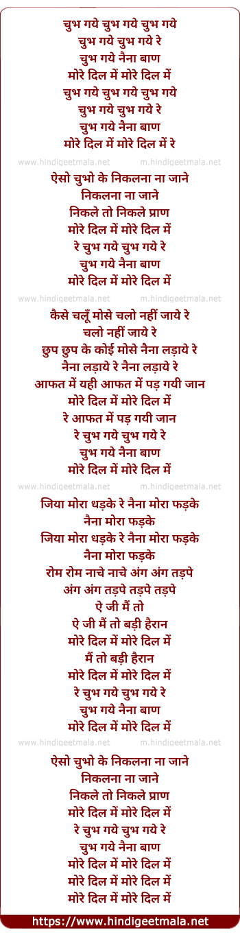 Lyrics of Chub Gaye Naina Baan More Dil Me - चुभ गये चुभ गये चुभ गये
