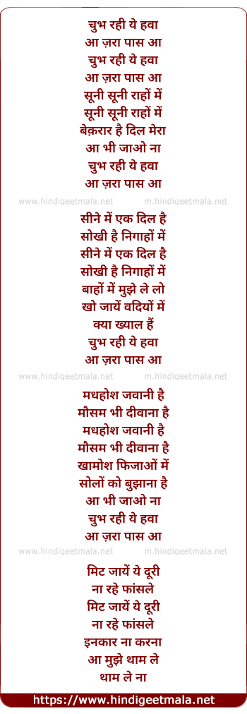 Lyrics of Chubh Rahi Ye Hawa - चुभ रही ये हवा