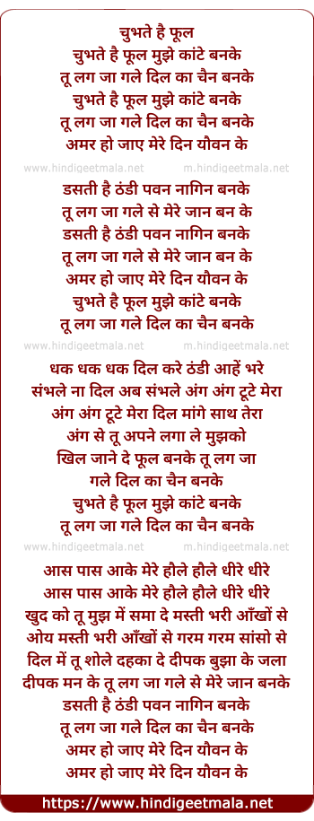 Lyrics of Chubhte Hain Phool - चुभते है फूल