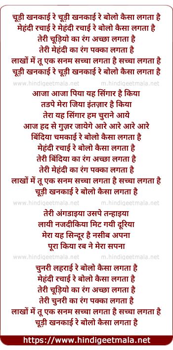 Lyrics of Chudee Khankaayee Re Bolo Kaisa Lagta Hai - चूड़ी खनकाई रे बोलो कैसा लगता है